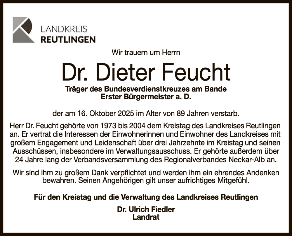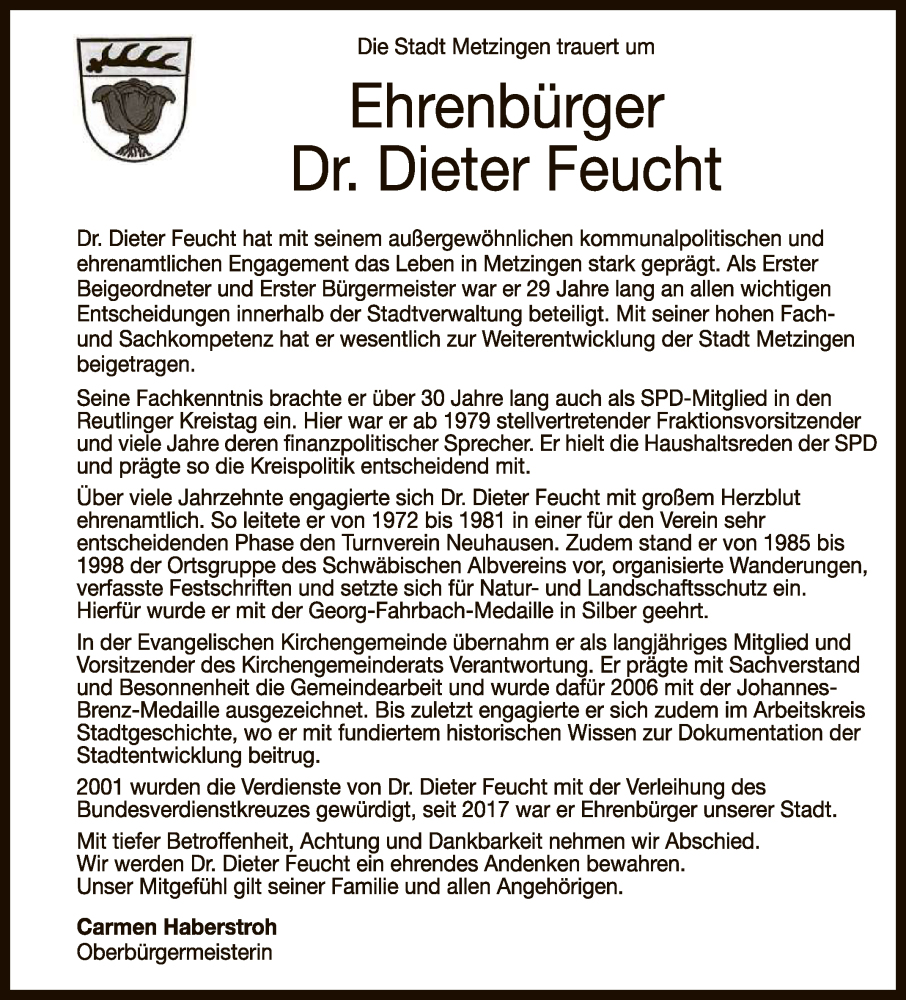 Hier finden Sie alle Traueranzeigen aus der Zeitung, die bisher für Dieter Feucht erschienen sind. Weitere Traueranzeigen, die in der Zeitung erscheinen, werden hier ebenfalls aufgelistet