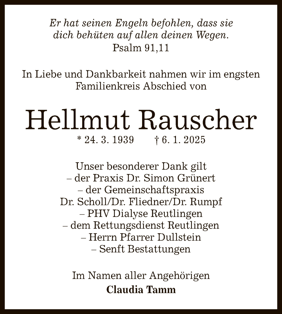 Hier finden Sie alle Traueranzeigen aus der Zeitung, die bisher für Hellmut Rauscher erschienen sind. Weitere Traueranzeigen, die in der Zeitung erscheinen, werden hier ebenfalls aufgelistet