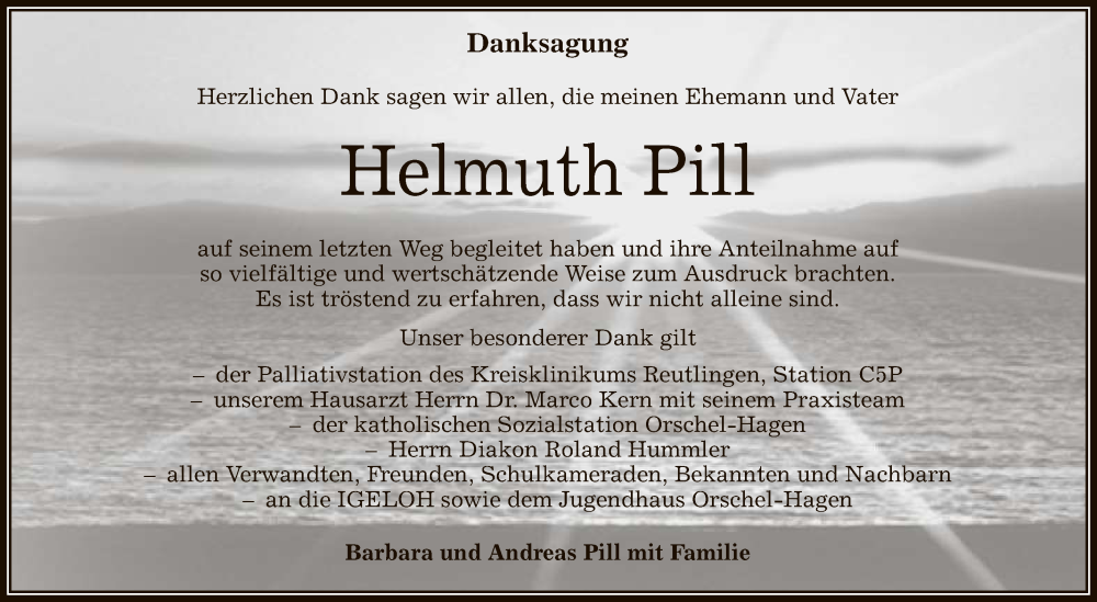 Hier finden Sie alle Traueranzeigen aus der Zeitung, die bisher für Helmuth Pill erschienen sind. Weitere Traueranzeigen, die in der Zeitung erscheinen, werden hier ebenfalls aufgelistet