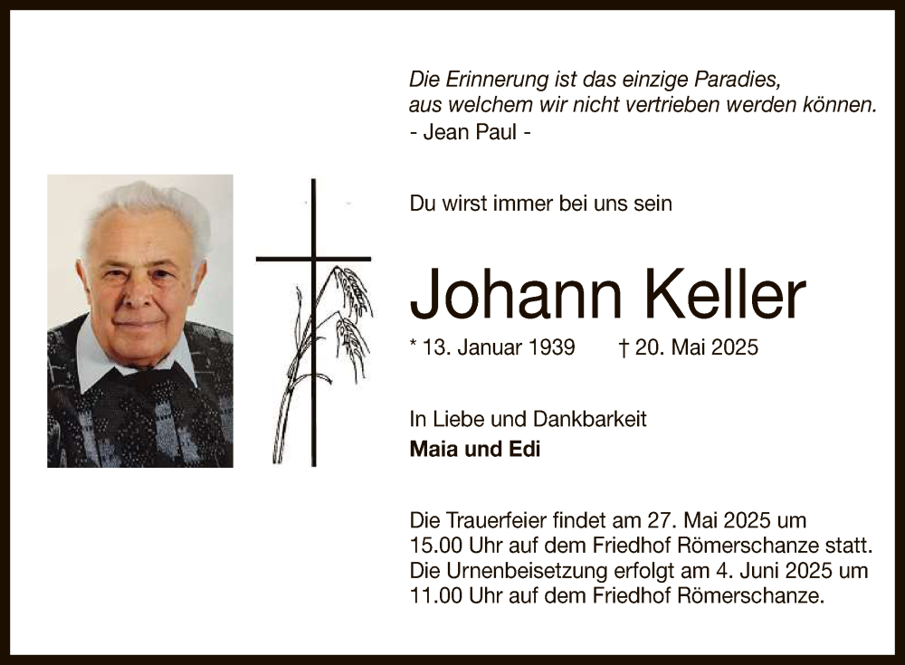 Hier finden Sie alle Traueranzeigen aus der Zeitung, die bisher für Johann Keller erschienen sind. Weitere Traueranzeigen, die in der Zeitung erscheinen, werden hier ebenfalls aufgelistet