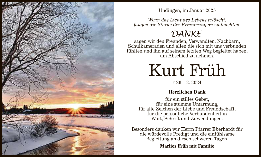 Hier finden Sie alle Traueranzeigen aus der Zeitung, die bisher für Kurt Früh erschienen sind. Weitere Traueranzeigen, die in der Zeitung erscheinen, werden hier ebenfalls aufgelistet