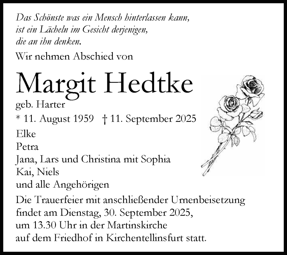 Hier finden Sie alle Traueranzeigen aus der Zeitung, die bisher für Margit Hedtke erschienen sind. Weitere Traueranzeigen, die in der Zeitung erscheinen, werden hier ebenfalls aufgelistet