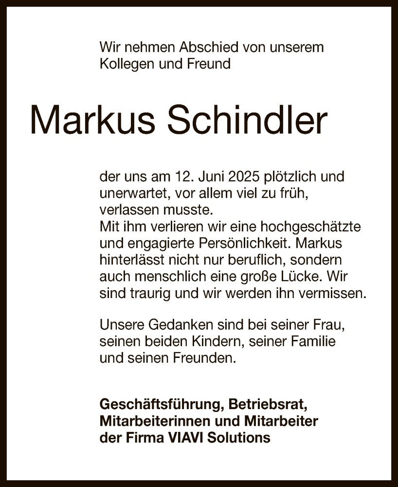 Hier finden Sie alle Traueranzeigen aus der Zeitung, die bisher für Markus Schindler erschienen sind. Weitere Traueranzeigen, die in der Zeitung erscheinen, werden hier ebenfalls aufgelistet