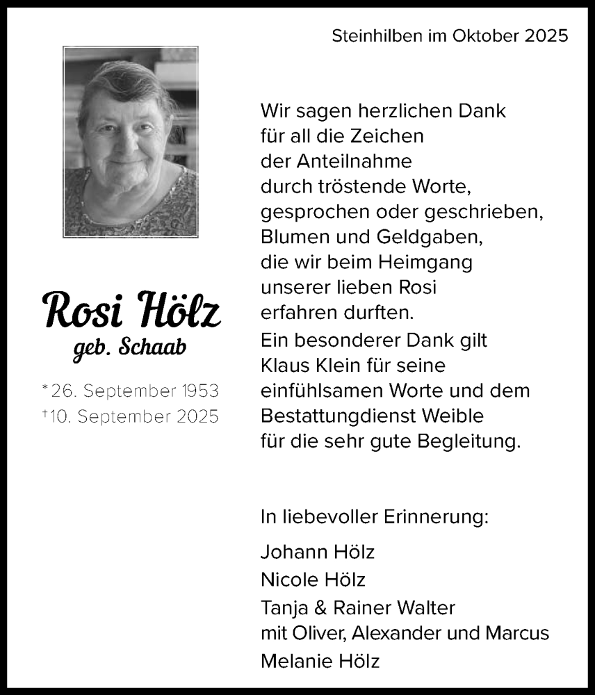 Hier finden Sie alle Traueranzeigen aus der Zeitung, die bisher für Rosi Hölz erschienen sind. Weitere Traueranzeigen, die in der Zeitung erscheinen, werden hier ebenfalls aufgelistet