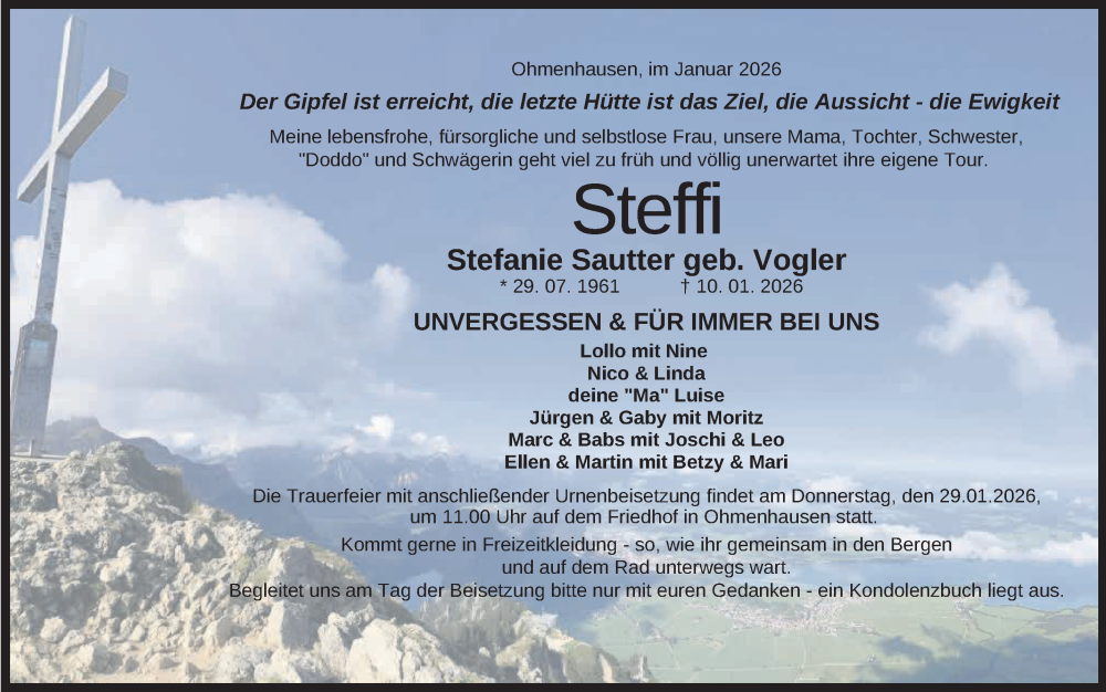 Hier finden Sie alle Traueranzeigen aus der Zeitung, die bisher für Stefanie Sautter erschienen sind. Weitere Traueranzeigen, die in der Zeitung erscheinen, werden hier ebenfalls aufgelistet