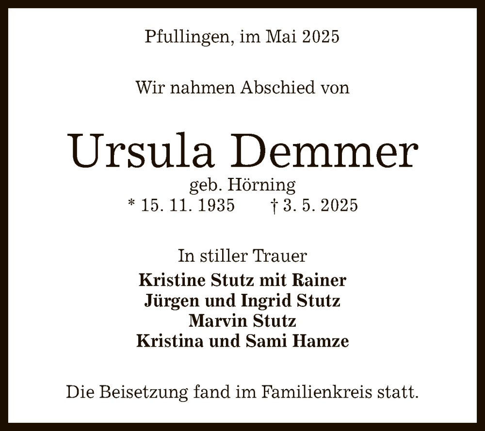 Hier finden Sie alle Traueranzeigen aus der Zeitung, die bisher für Ursula Demmer erschienen sind. Weitere Traueranzeigen, die in der Zeitung erscheinen, werden hier ebenfalls aufgelistet