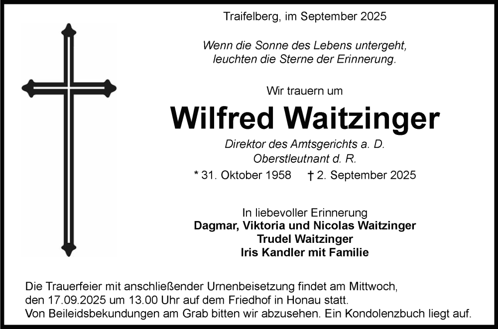 Hier finden Sie alle Traueranzeigen aus der Zeitung, die bisher für Wilfred Waitzinger erschienen sind. Weitere Traueranzeigen, die in der Zeitung erscheinen, werden hier ebenfalls aufgelistet