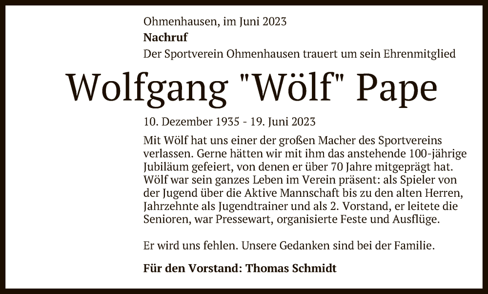Hier finden Sie alle Traueranzeigen aus der Zeitung, die bisher für Wolfgang Pape erschienen sind. Weitere Traueranzeigen, die in der Zeitung erscheinen, werden hier ebenfalls aufgelistet